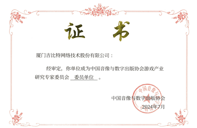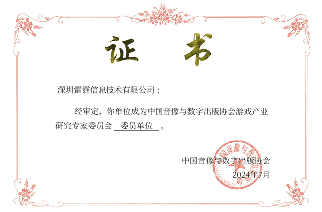 2024年7月25日,,中国音像与数字出版协会游戏产业研究专家委员会(以下简称“中国音数协游戏专委会”)成立大会在上海市召开,,,,厦门赏金大对决网络技术股份有限公司及其子公司深圳雷霆信息技术有限公司(以下统称“公司”)正式成为中国音数协游戏专委会委员单位。。。。