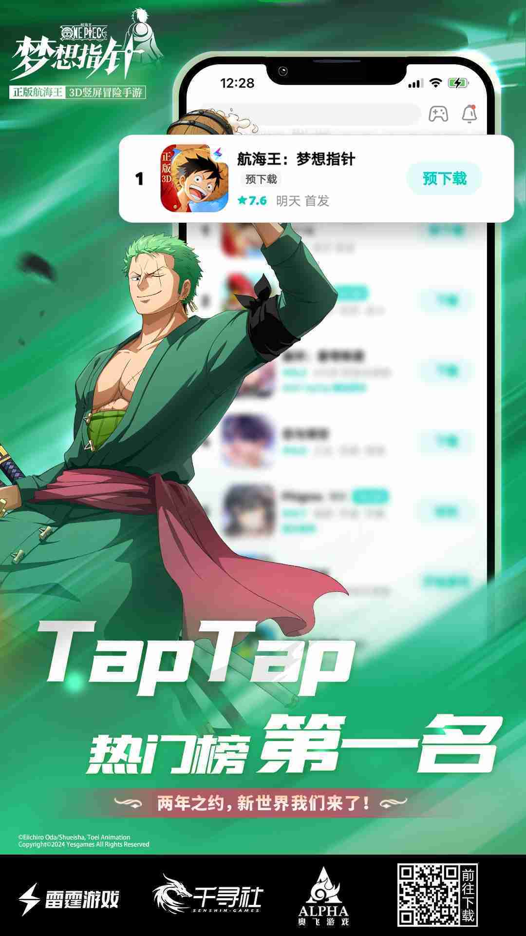 《航海王::::梦想指针》登顶App Store免费榜,,,公测福利汇总!!